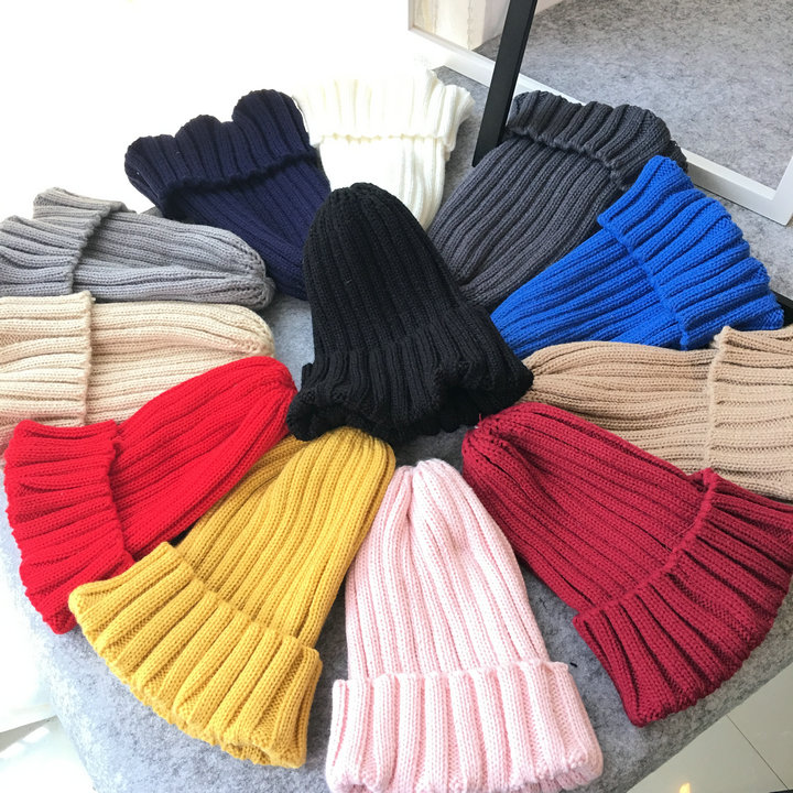 韩版百搭纯色毛线尖尖帽针织帽子女潮秋冬情侣保暖套头帽男糖果色