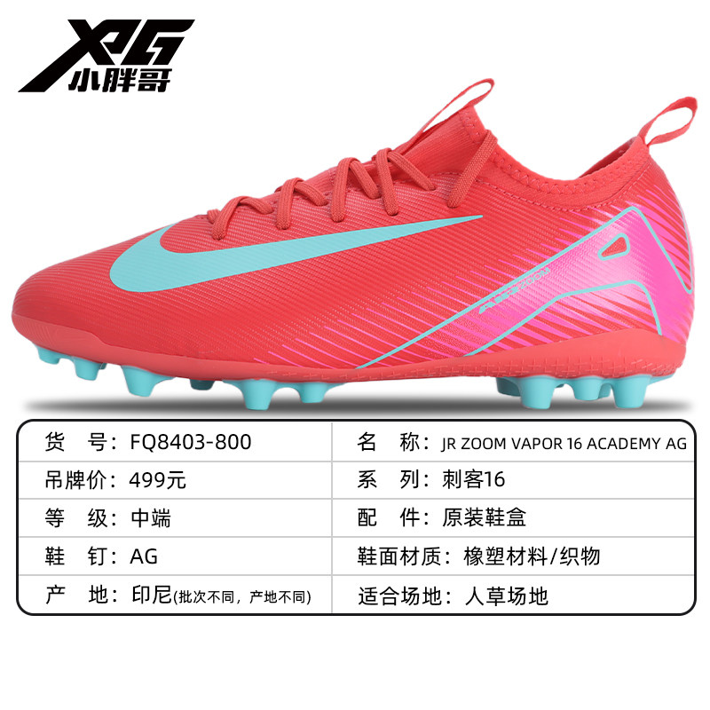 小胖哥XPG耐克刺客16中端AG人草短钉无鞋带青少年儿童男女足球鞋