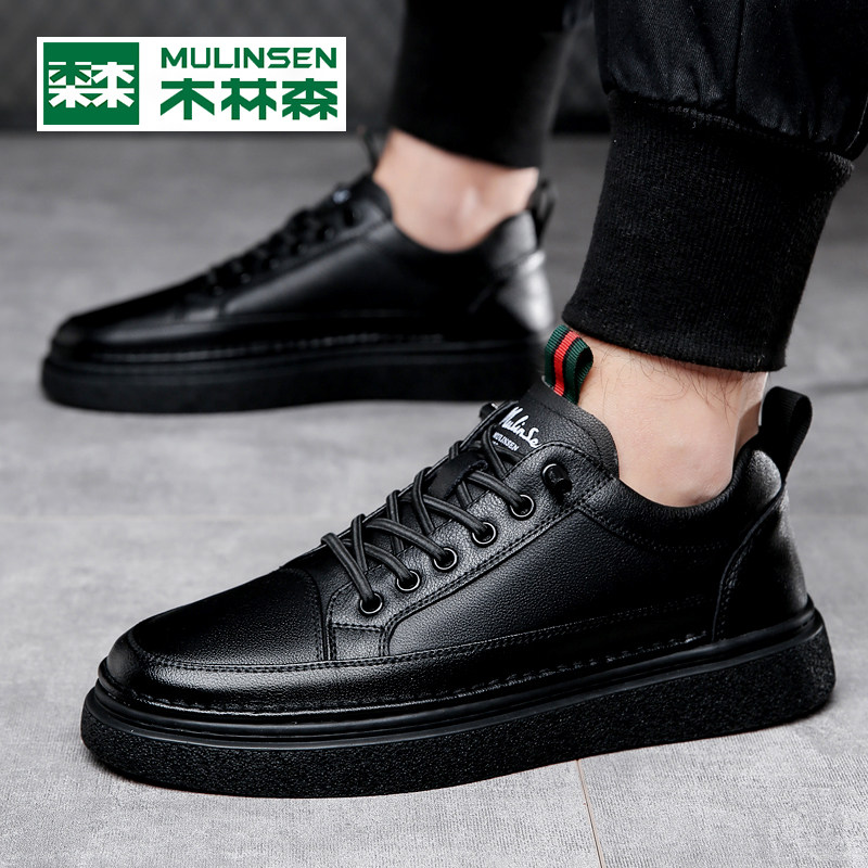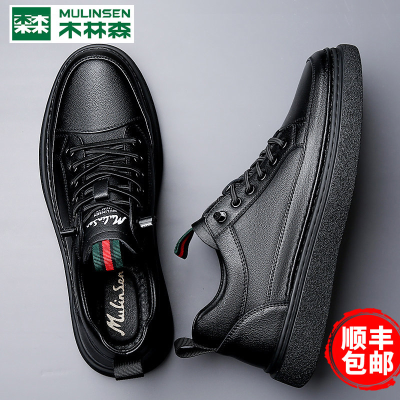 木林森男鞋2025冬季小黑潮鞋男款头层牛皮休闲鞋板鞋运动真皮鞋子