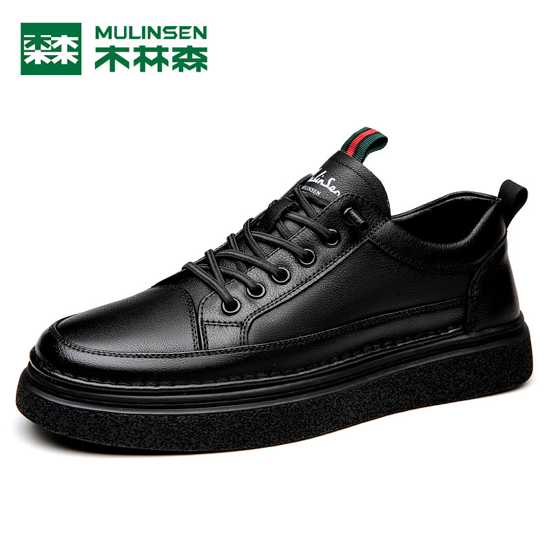 木林森男鞋头层牛皮休闲皮鞋板鞋