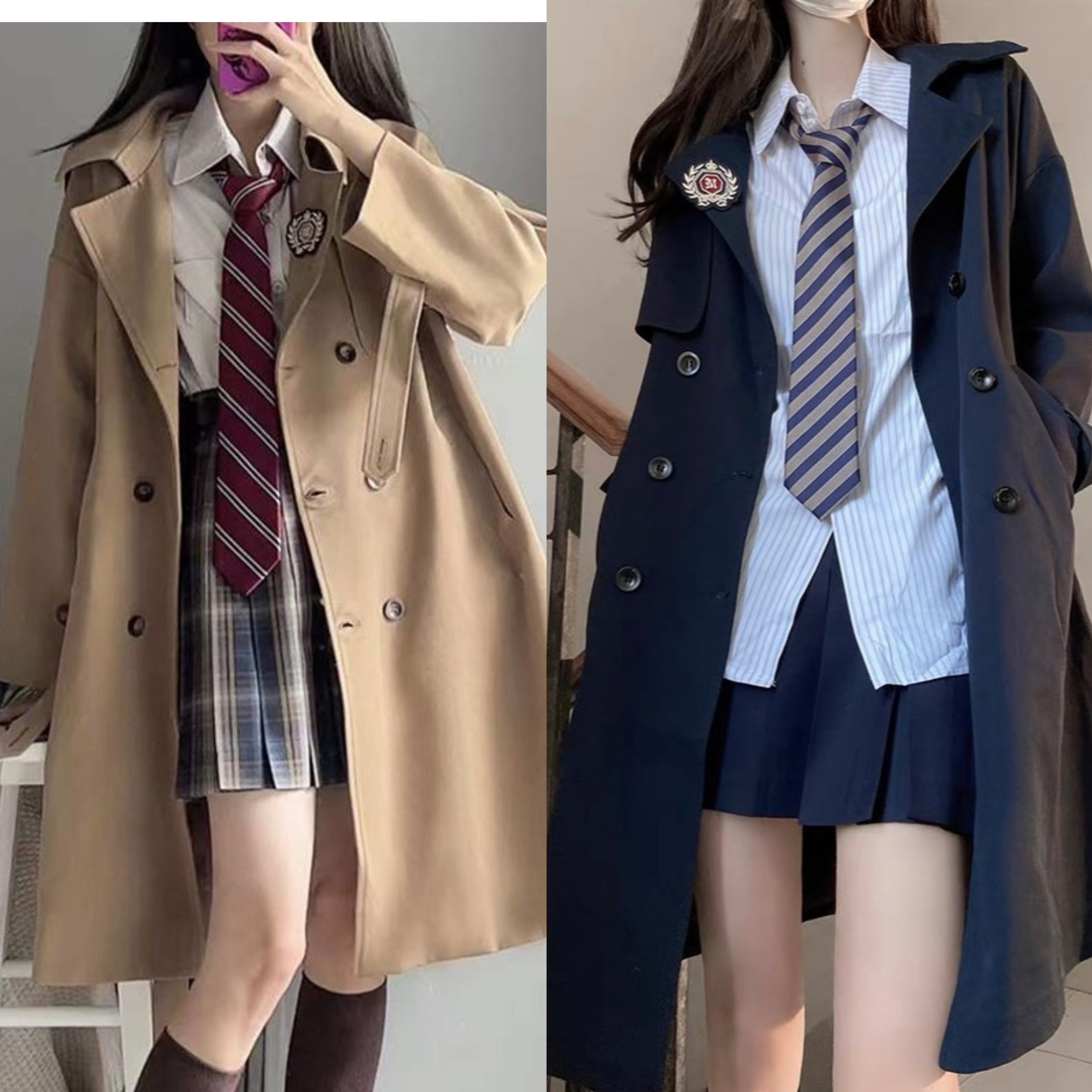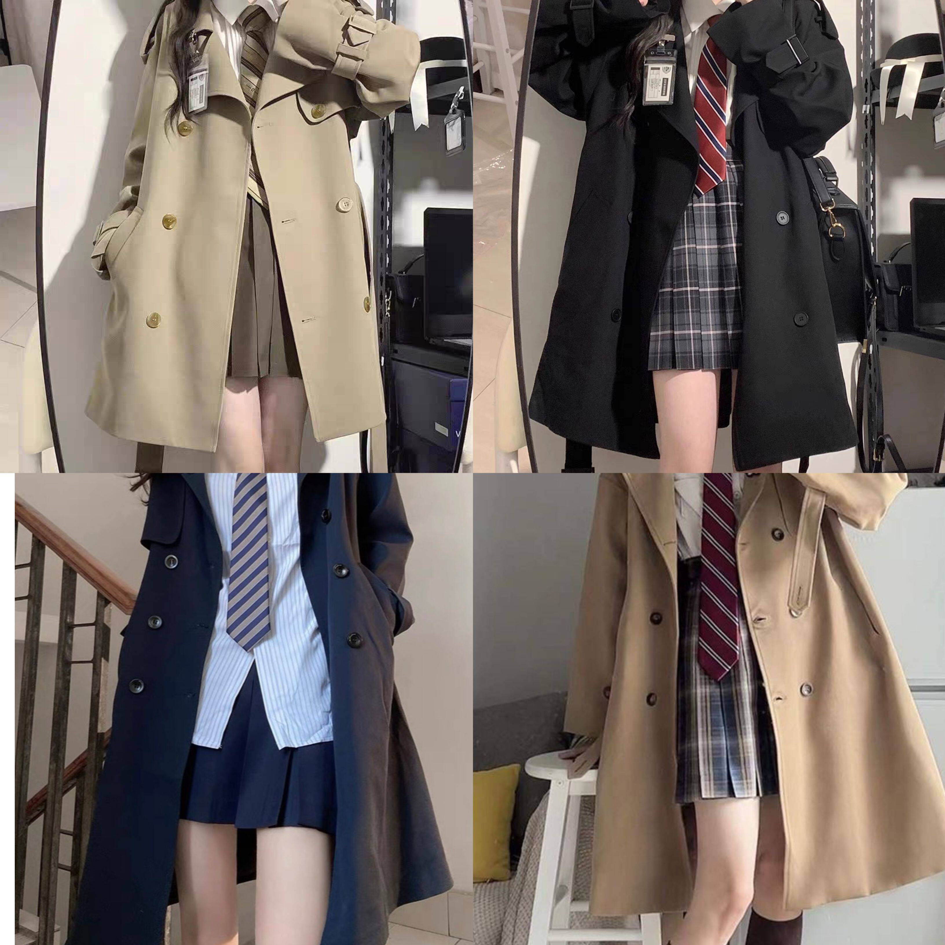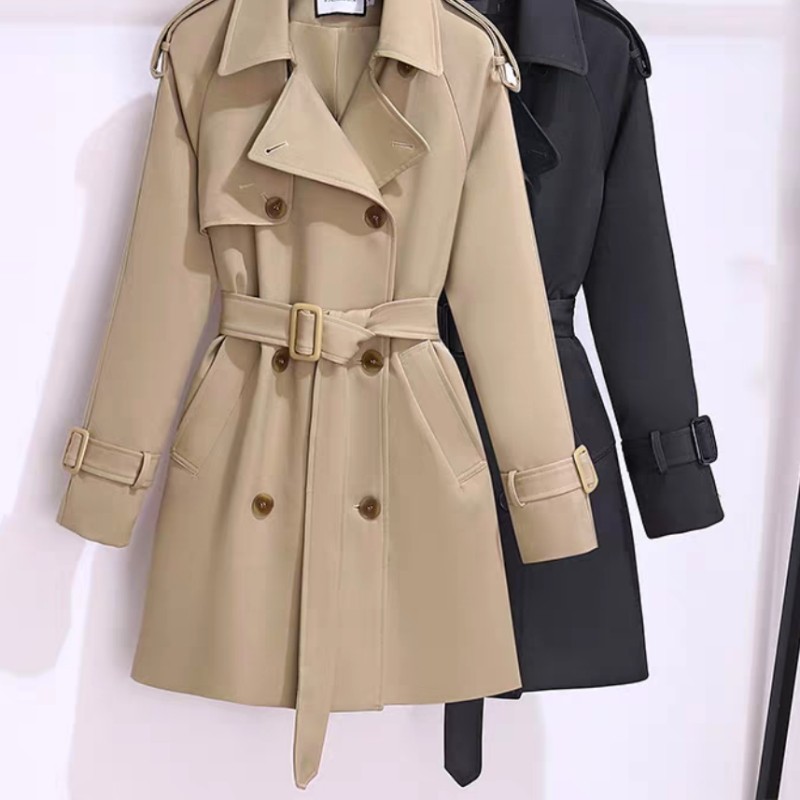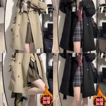 韩版风衣外套女春秋冬新款英伦风休闲系带中长款短款工装加厚大衣