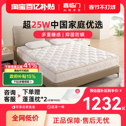 【塔利亚】喜临门官方A类厚席梦思偏硬垫乳胶椰棕黄麻弹簧床垫