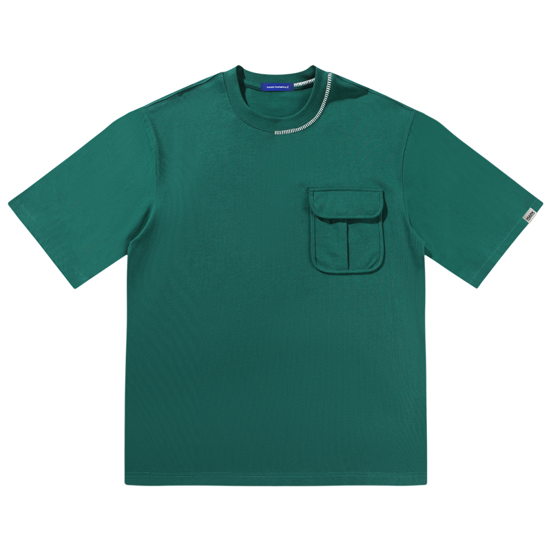 马克华菲短袖t恤男夏季异色车线美式潮牌圆领宽松半袖口袋上衣服