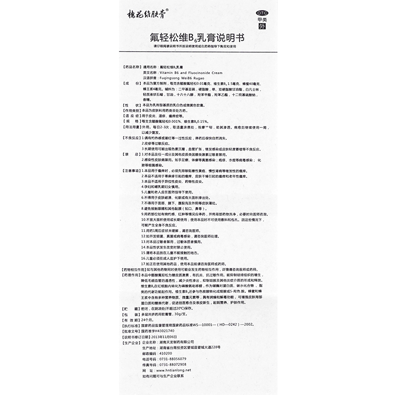 【槐花维肤膏】氟轻松维B6乳膏0.001%0.15%*30g*1支/盒