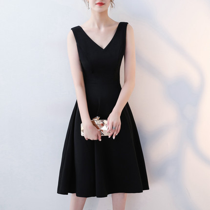 2025年新款高级感赫本风小黑裙吊带V领无袖背心打底显瘦连衣裙女