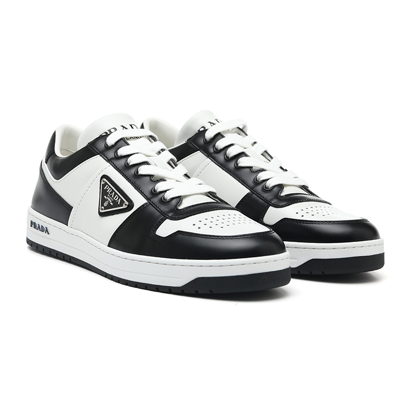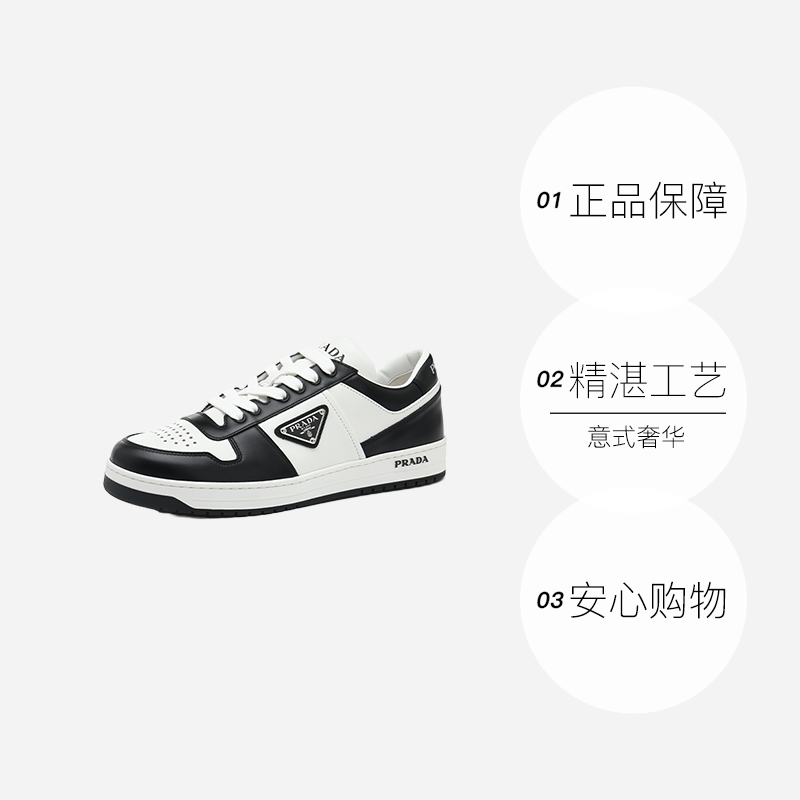 【自营】Prada/普拉达男士黑白配色三角logo徽标系带休闲鞋板鞋