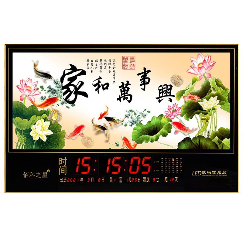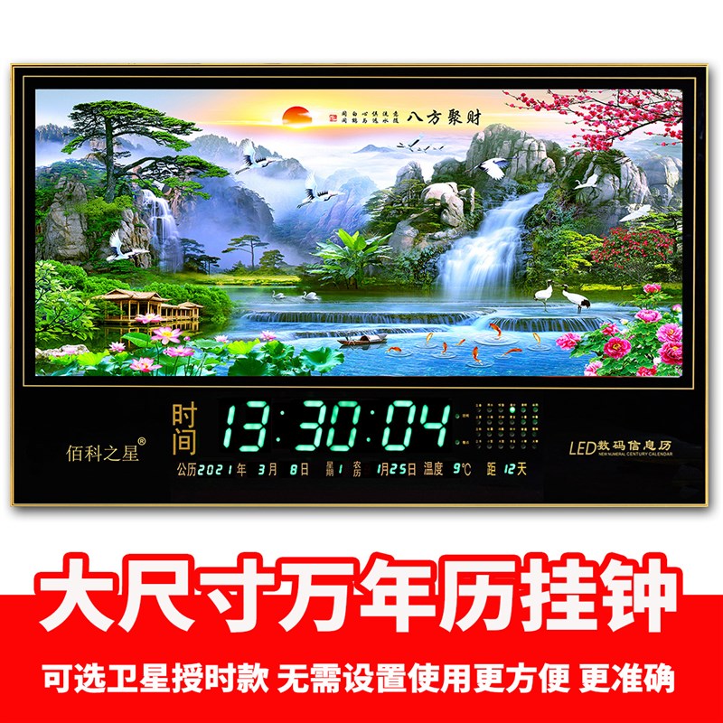 佰科之星大尺寸万年历卫星授时挂钟夜光插电客厅静音风景日历时钟