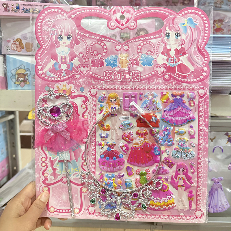 儿童卡通立体穿衣奖励益智大贴纸皇冠仙女魔法棒换装女孩泡泡贴画