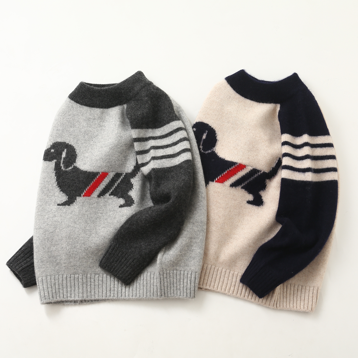 洪叶云台100%纯山羊绒男童毛衣卡通秋冬宝宝针织衫加厚儿童羊绒衫