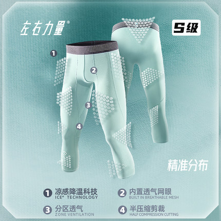 左右力量篮球紧身裤冰凉感夏季七分健身跑步骑行运动速干压缩裤男