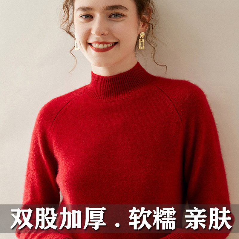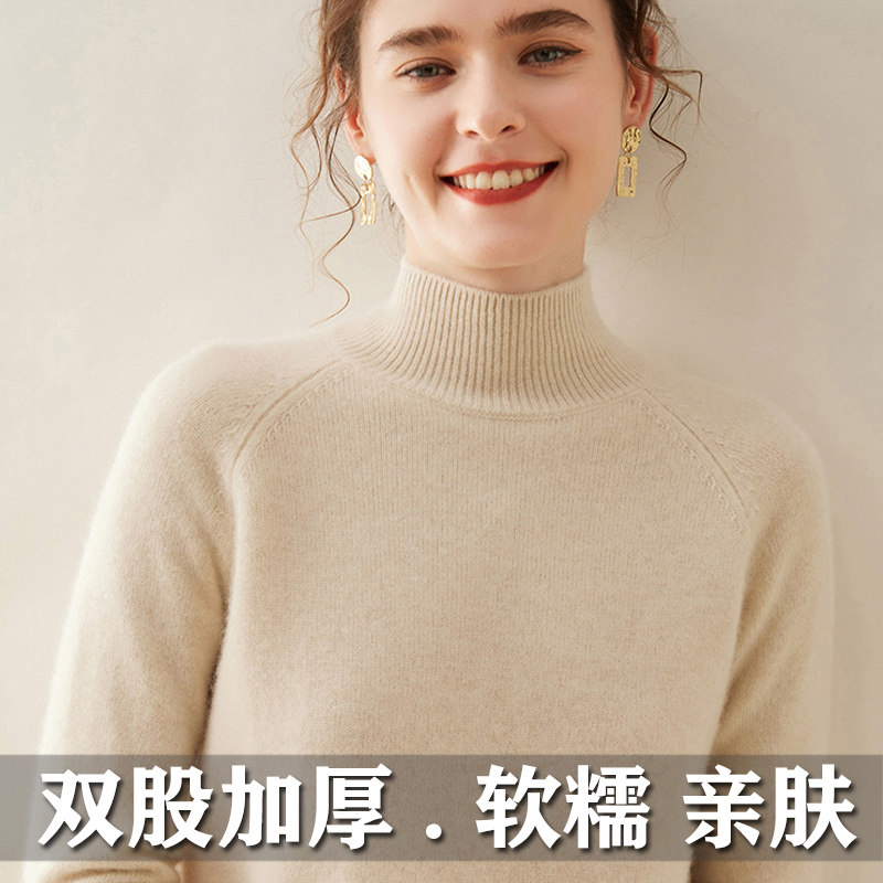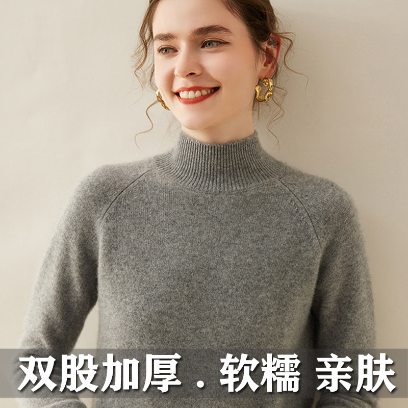 鄂尔多斯市双股加厚羊绒衫女半高领宽松纯色内搭毛衣针织打底衫