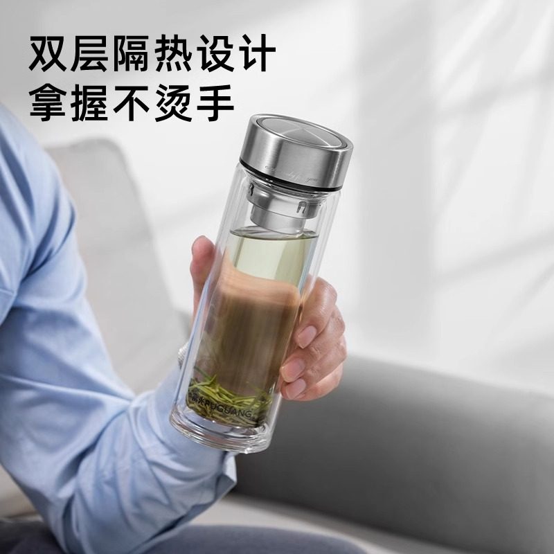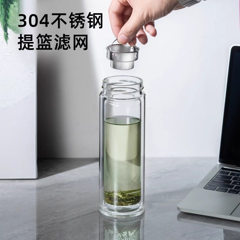 富光玻璃杯双层大容量花茶杯男茶水分离泡茶杯子印字G2309-SH-400