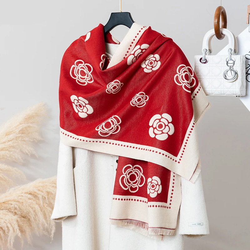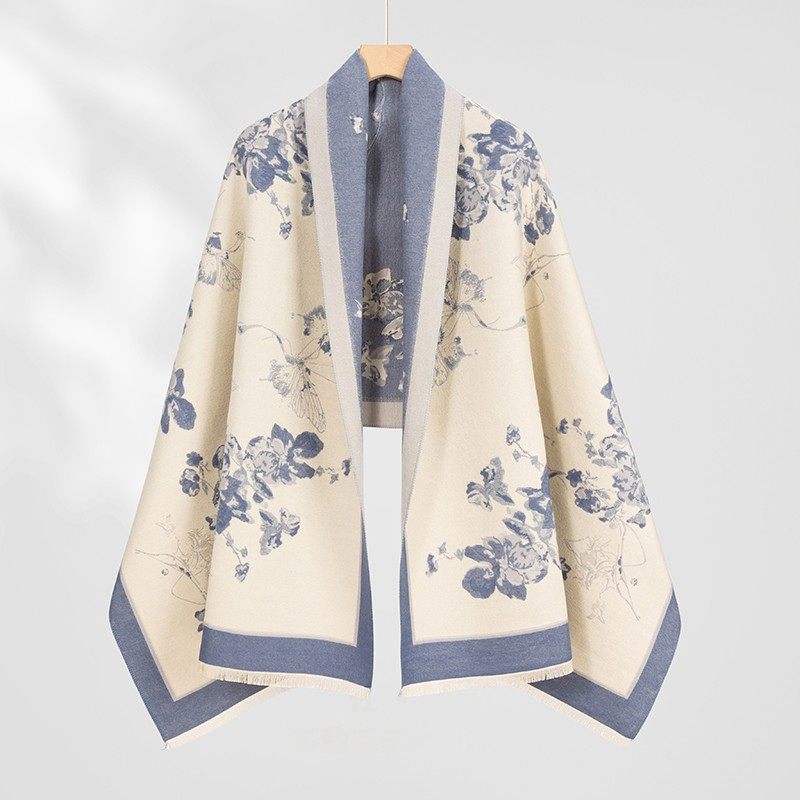 2025新款上海故事秋冬季女士妈妈双面仿羊绒羊毛围巾外搭披肩两用