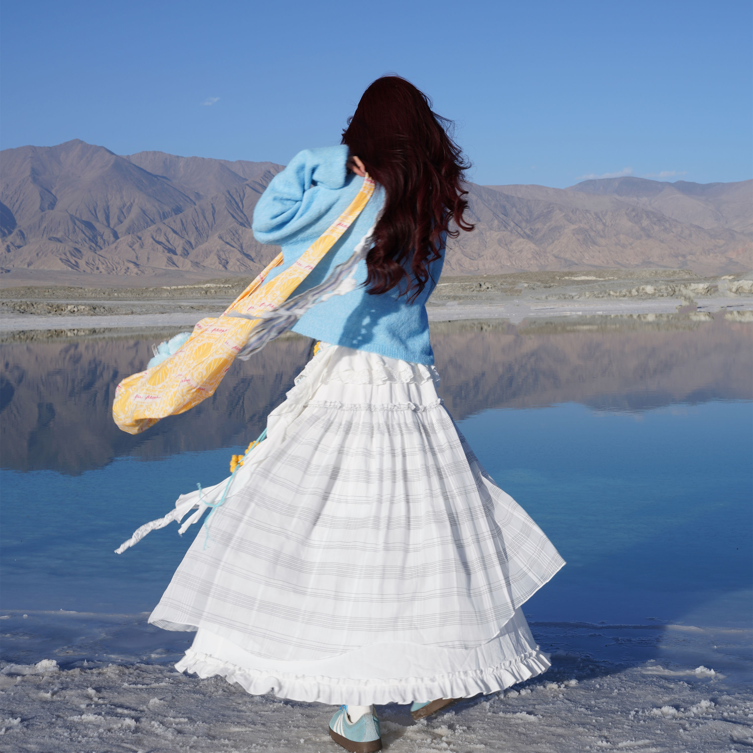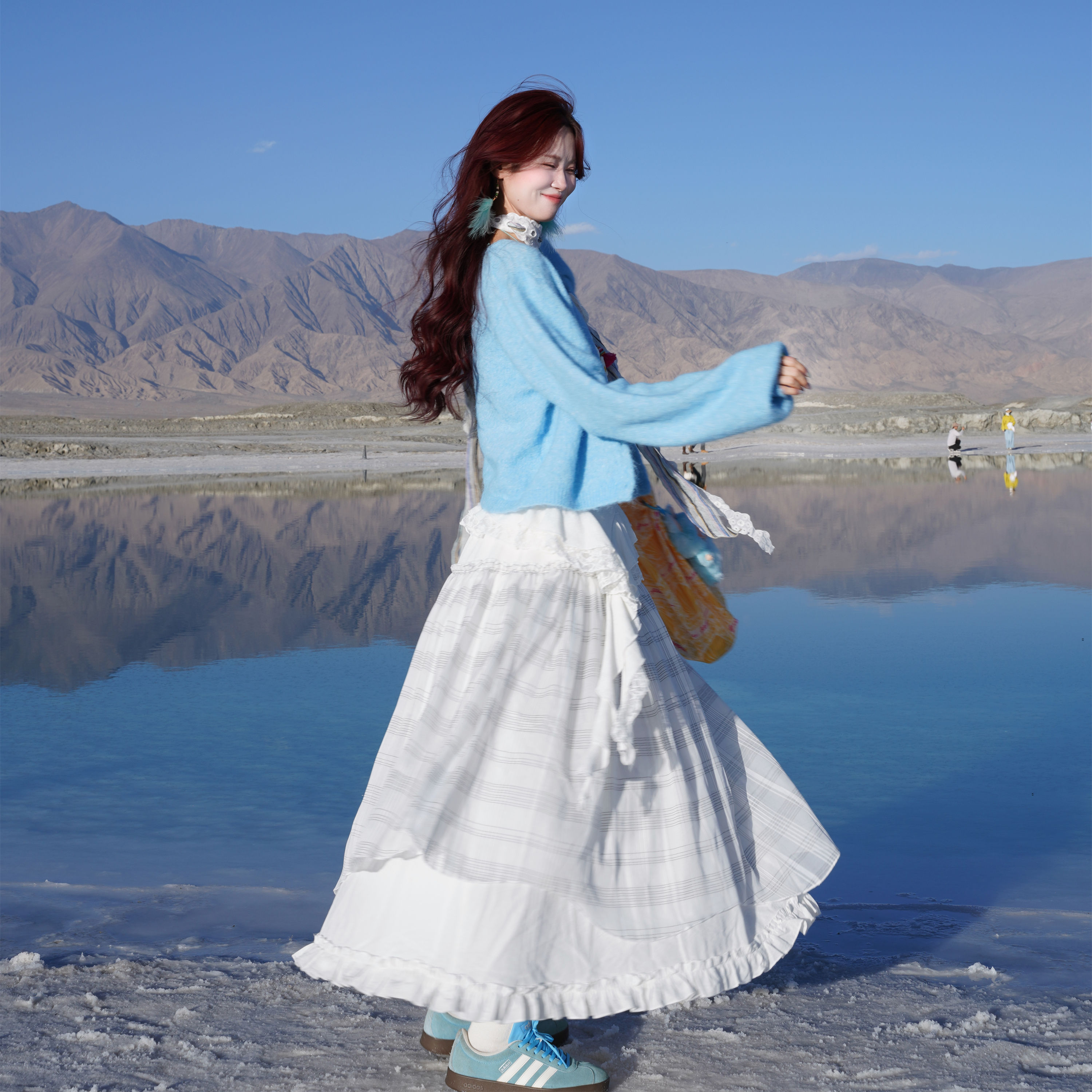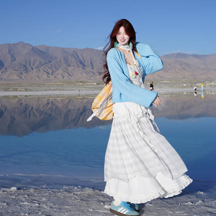 少女感白色格子半身裙