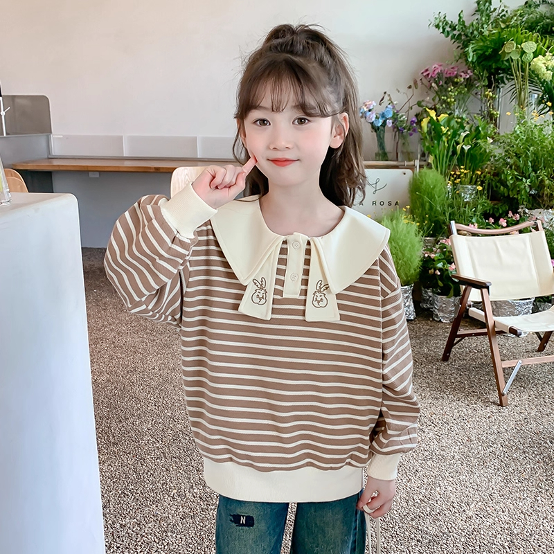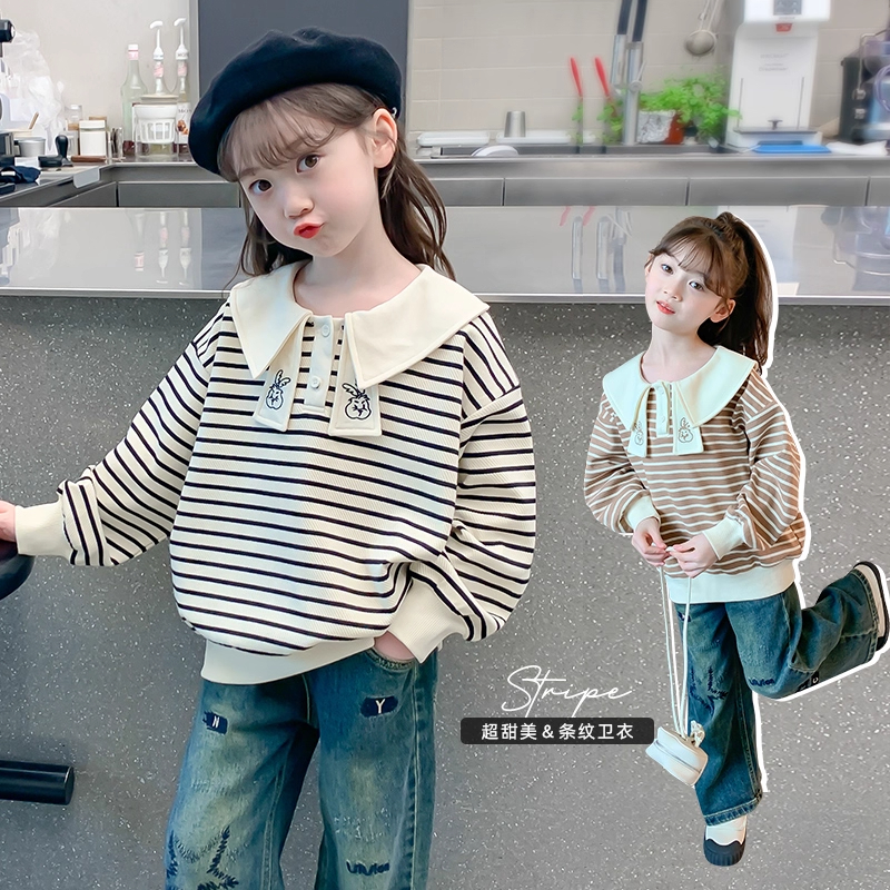 女童秋装卫衣2025新款洋气时髦条纹女孩中大童衣服儿童上衣春秋款