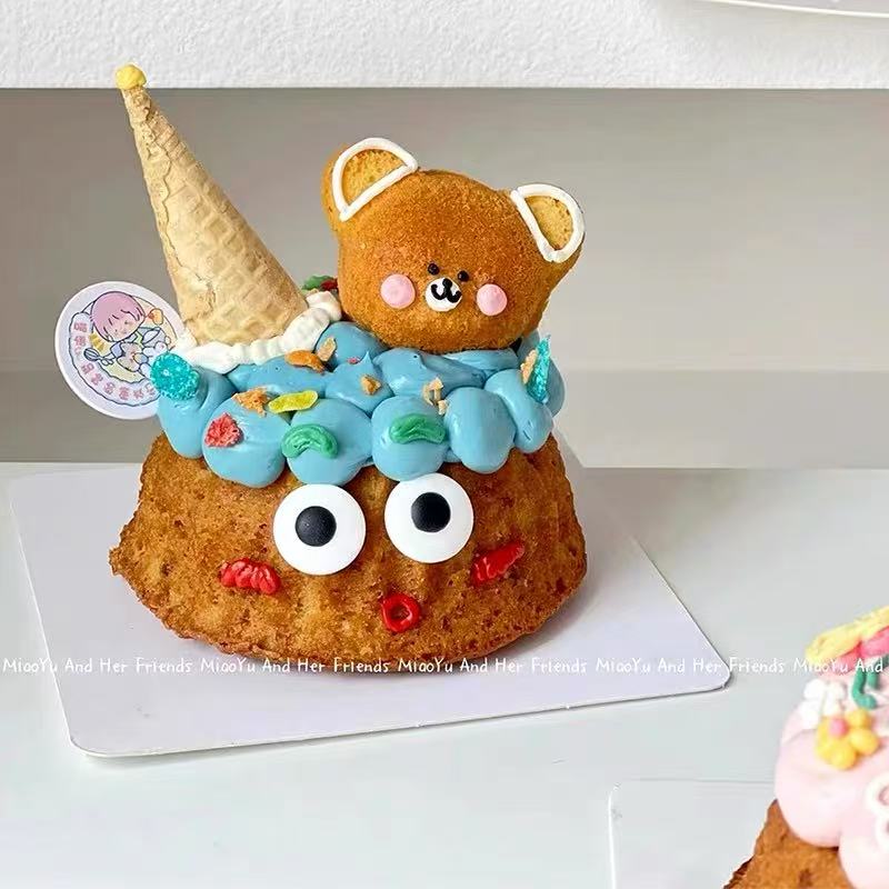 迷你草帽毛球帽咕咕霍夫蛋糕装饰61丑萌搞怪小熊蛋筒雨丝烘焙插件