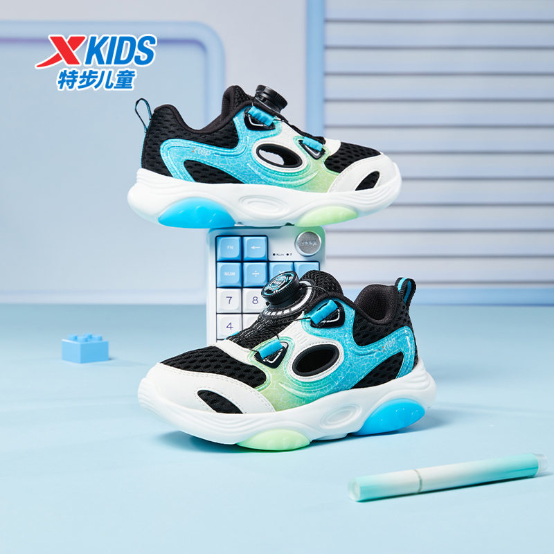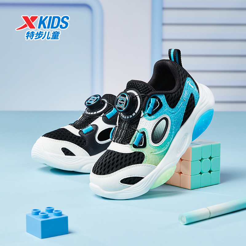 特步童鞋小童夏季款网面透气儿童运动鞋男童旋钮扣防滑耐磨休闲鞋