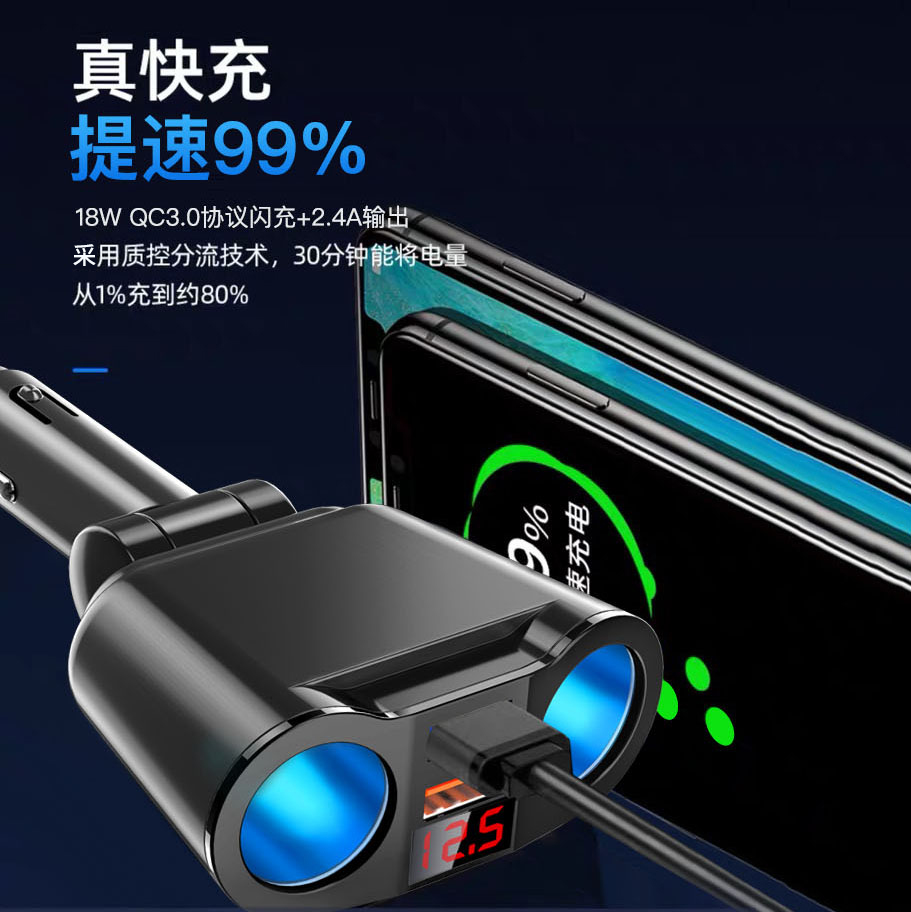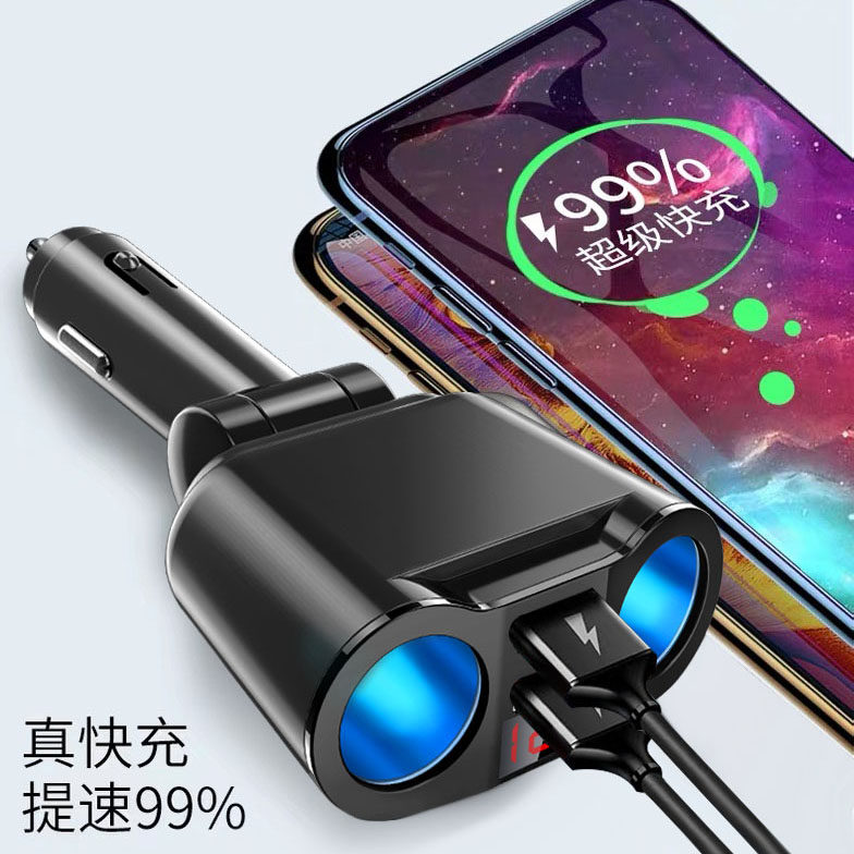 汽车车载充电器一拖二转换插头双usb手机超级快充通用型
