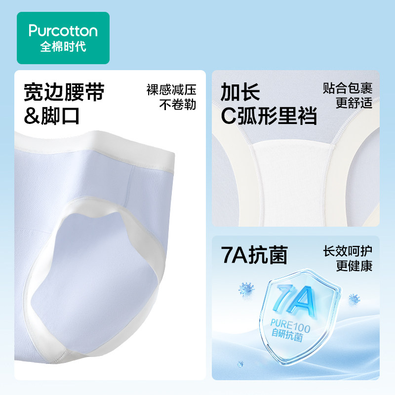 【新品】全棉时代女士内裤7A抗菌针织宽边三角裤纯棉内裤多条装