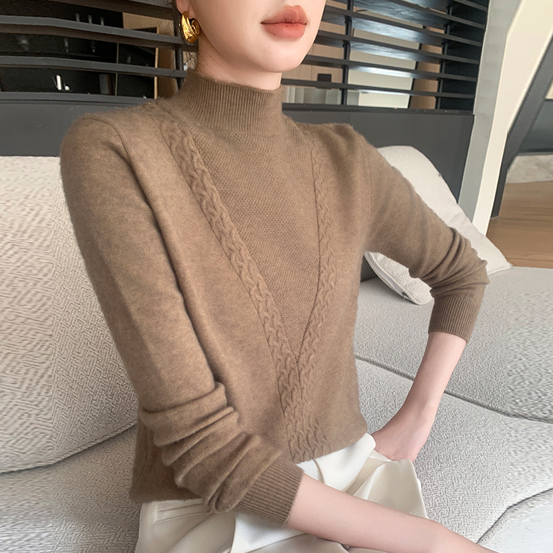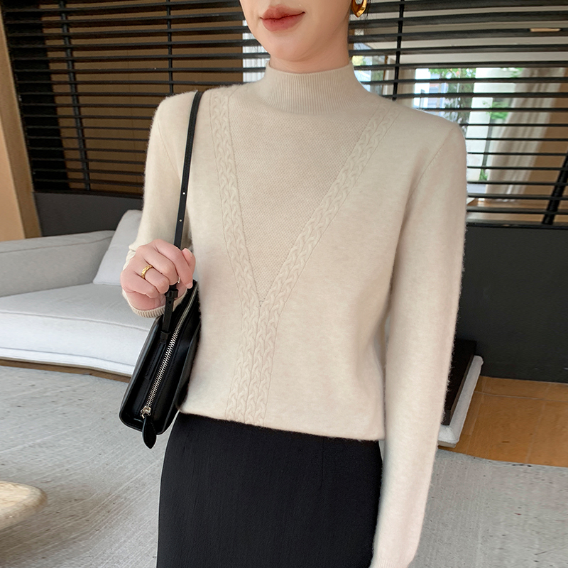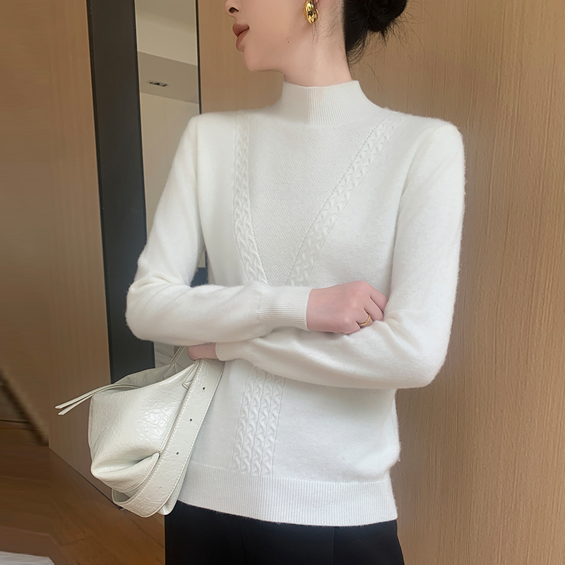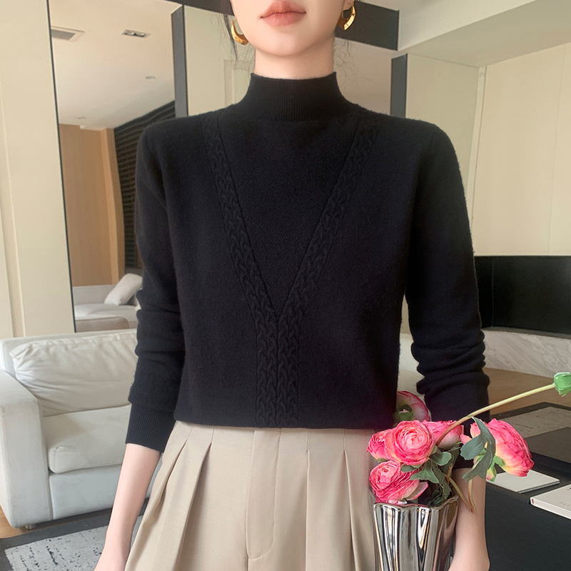 鄂尔多斯市羊绒衫女半高领无缝一线成衣宽松针织打底衫冬毛衣