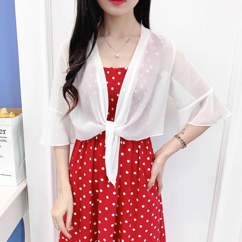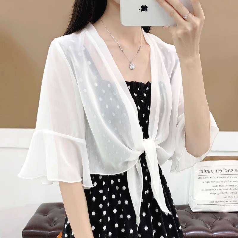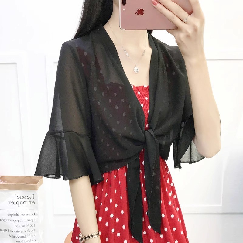 雪纺衫防晒开衫空调衫上衣女夏短款外套薄款外搭配吊带裙的小披肩