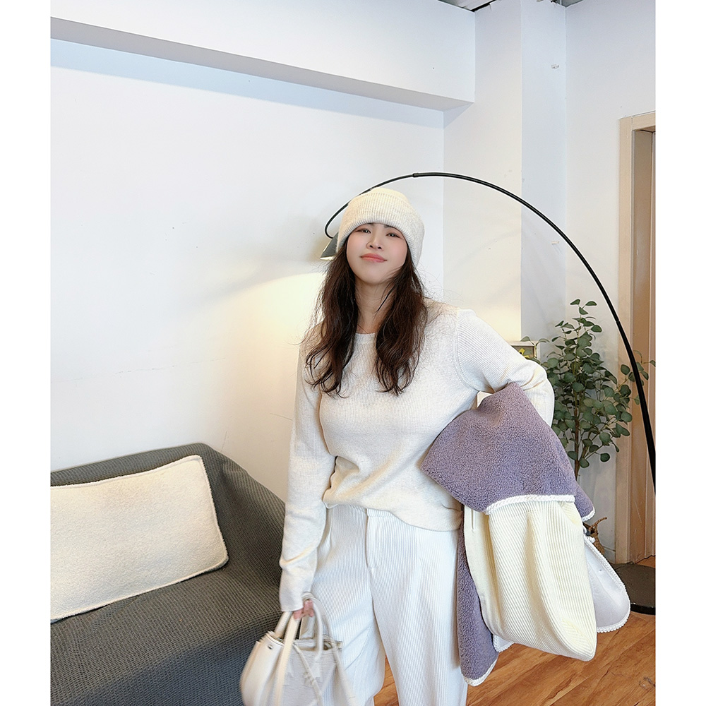 基础款纯色圆领针织衫打底衫内搭