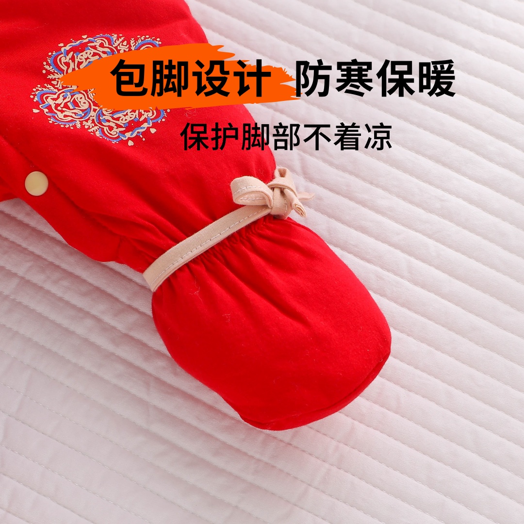 新生婴儿红色过年喜庆衣服秋冬季加厚连体衣新年宝宝男满月拜年服