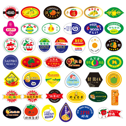 通用桃橙子梨芒果香蕉西瓜苹果奇异水果不干胶贴纸标签商标定制