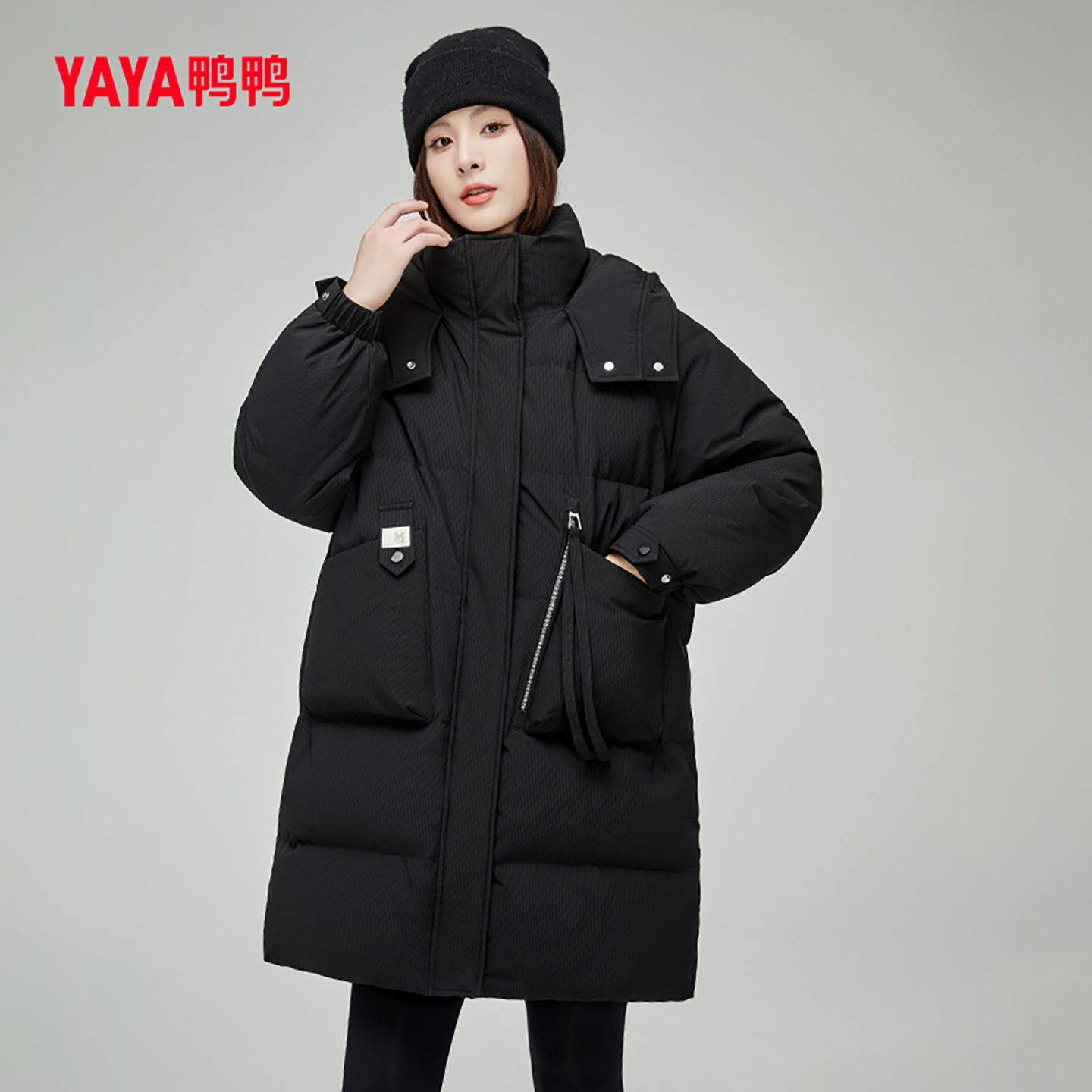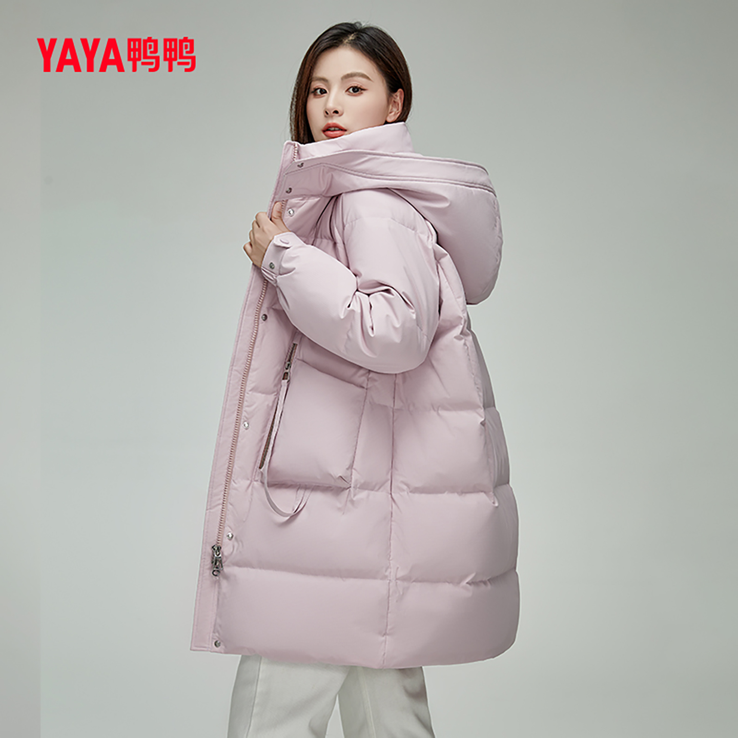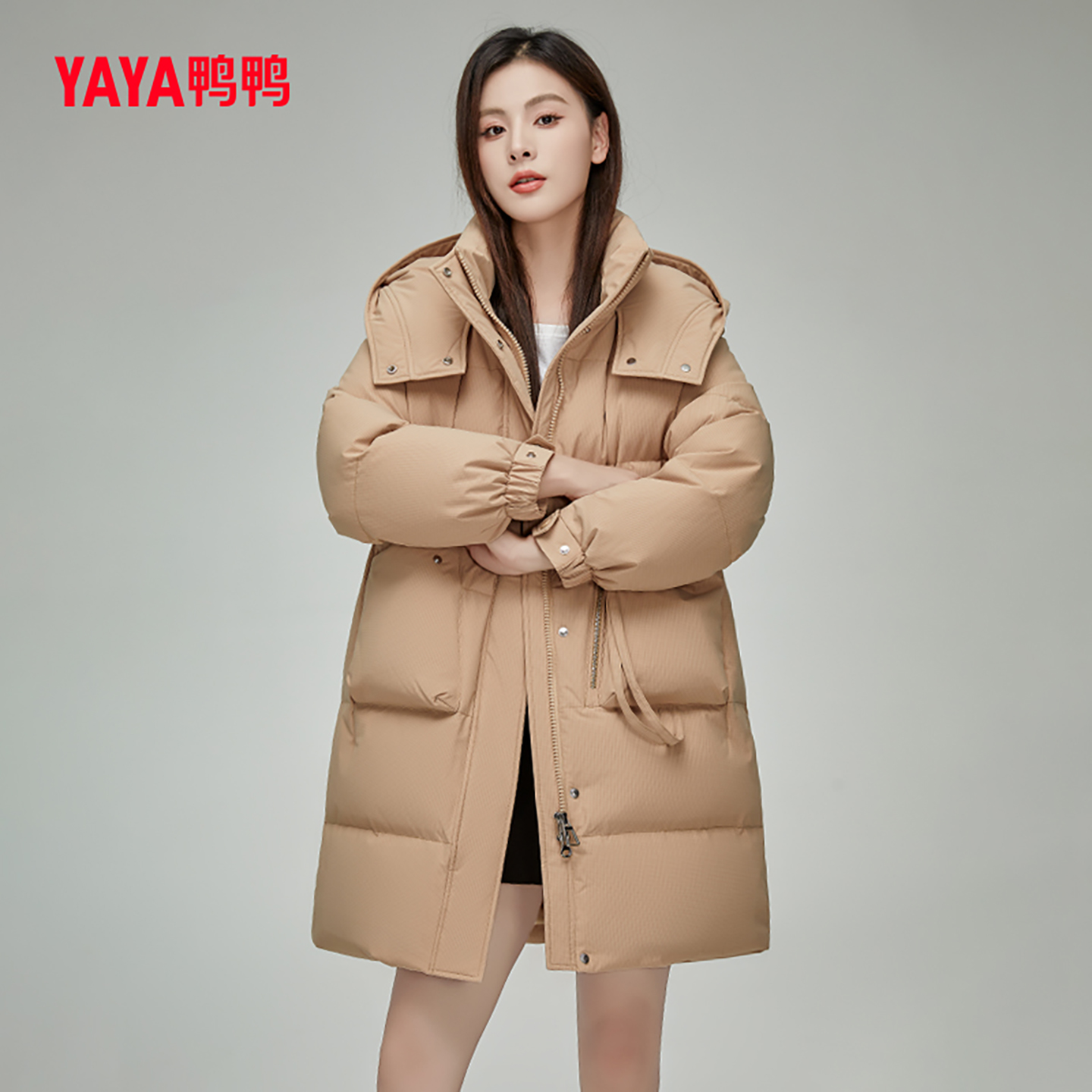 鸭鸭羽绒服中长款女2025冬季新品连帽加厚时尚显瘦保暖鸭绒外套潮