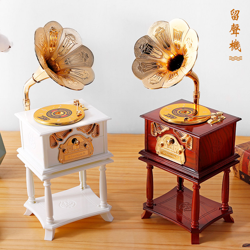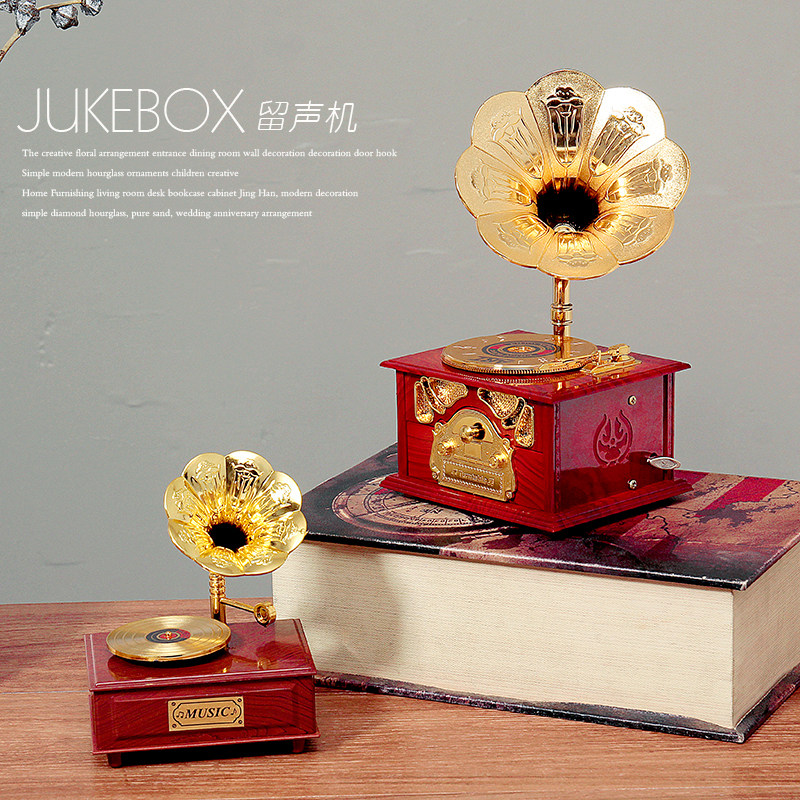 复古欧式唱片留声机音乐盒八音盒客厅玄关办公Q室装饰摆件生日礼