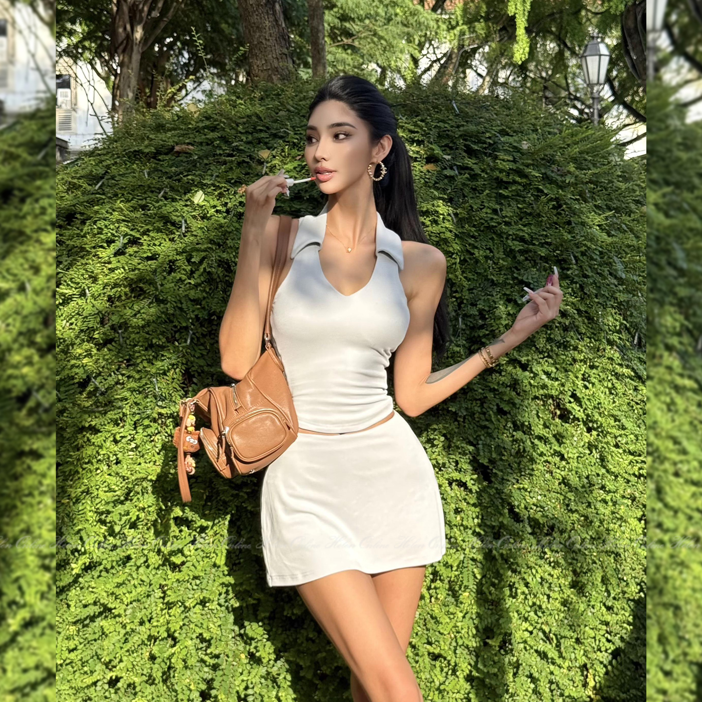HELEN【网球运动系列】带胸垫带凉感无袖背心A字裙裤防走光套装女