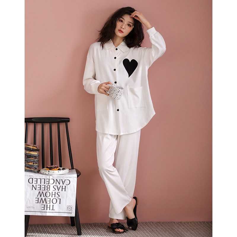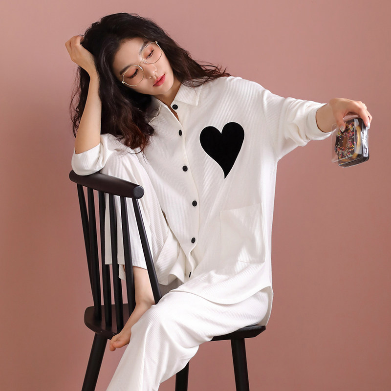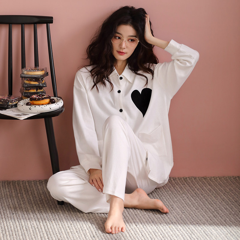 睡衣女春秋款纯棉长袖白色可外穿