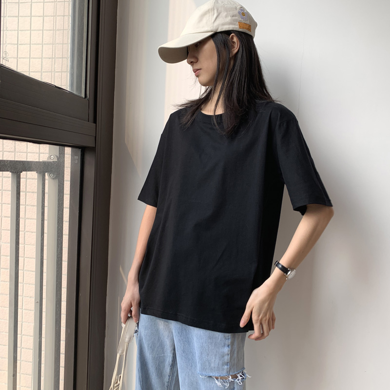 白色t恤女2021夏装新款纯棉宽松百搭ins圆领短袖大码内搭打底衫
