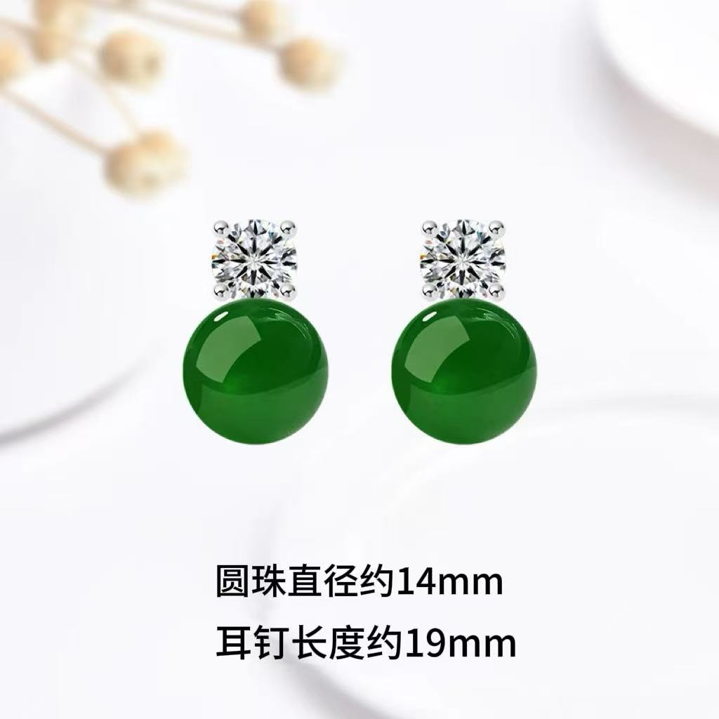 雨露-玛瑙玉髓高级耳环圆珠中式时尚耳钉珠宝首饰饰品耳饰绿色