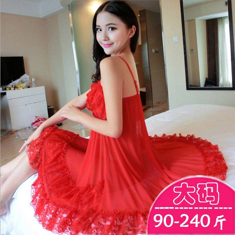 特大码90-200斤夏季女士网纱蕾丝花边性感睡裙胖MM加肥加大码睡裙