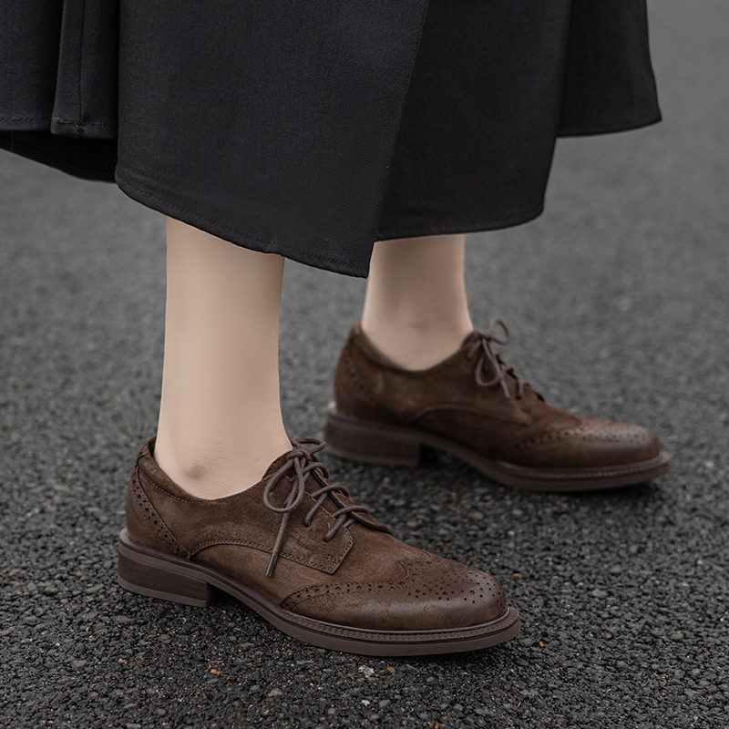 羊皮鞋女复古布洛克女鞋系带真皮英伦风小皮鞋女英伦单鞋牛津鞋女
