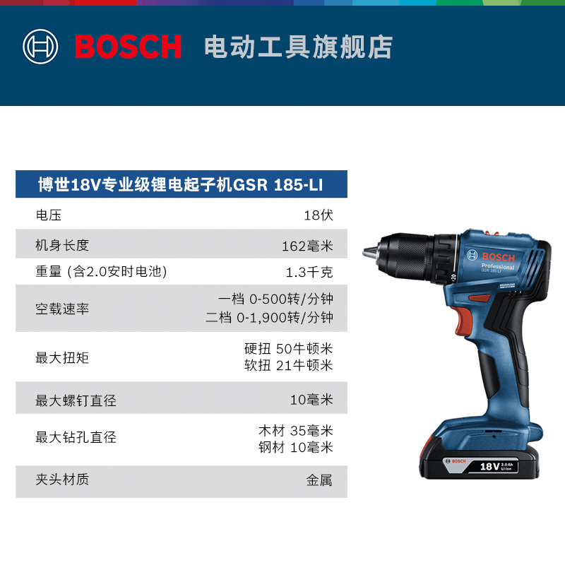 博世锂电无刷电钻手电钻充电式起子机螺丝刀电动工具GSR/GSB185LI