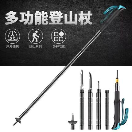 户外用品爬山装备多功能登山杖手杖非碳素超轻折叠男女伸缩防身棍