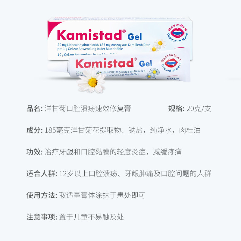 德国Stada甘美达复方甘菊利多卡因凝胶神口腔溃疡药牙龈肿痛上火