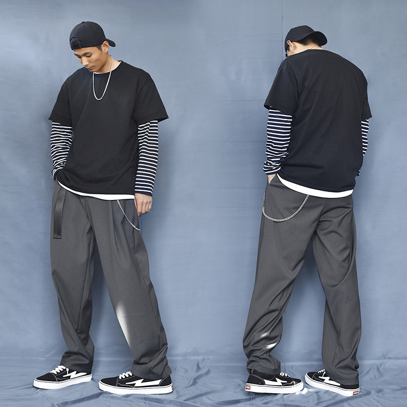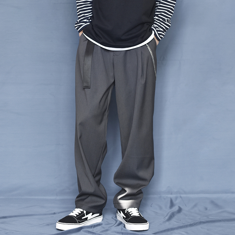 宽松痞帅坠感男裤西装灰色hiphop裤子休闲ins垂感西裤直筒裤男潮