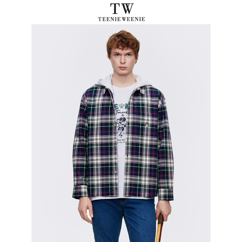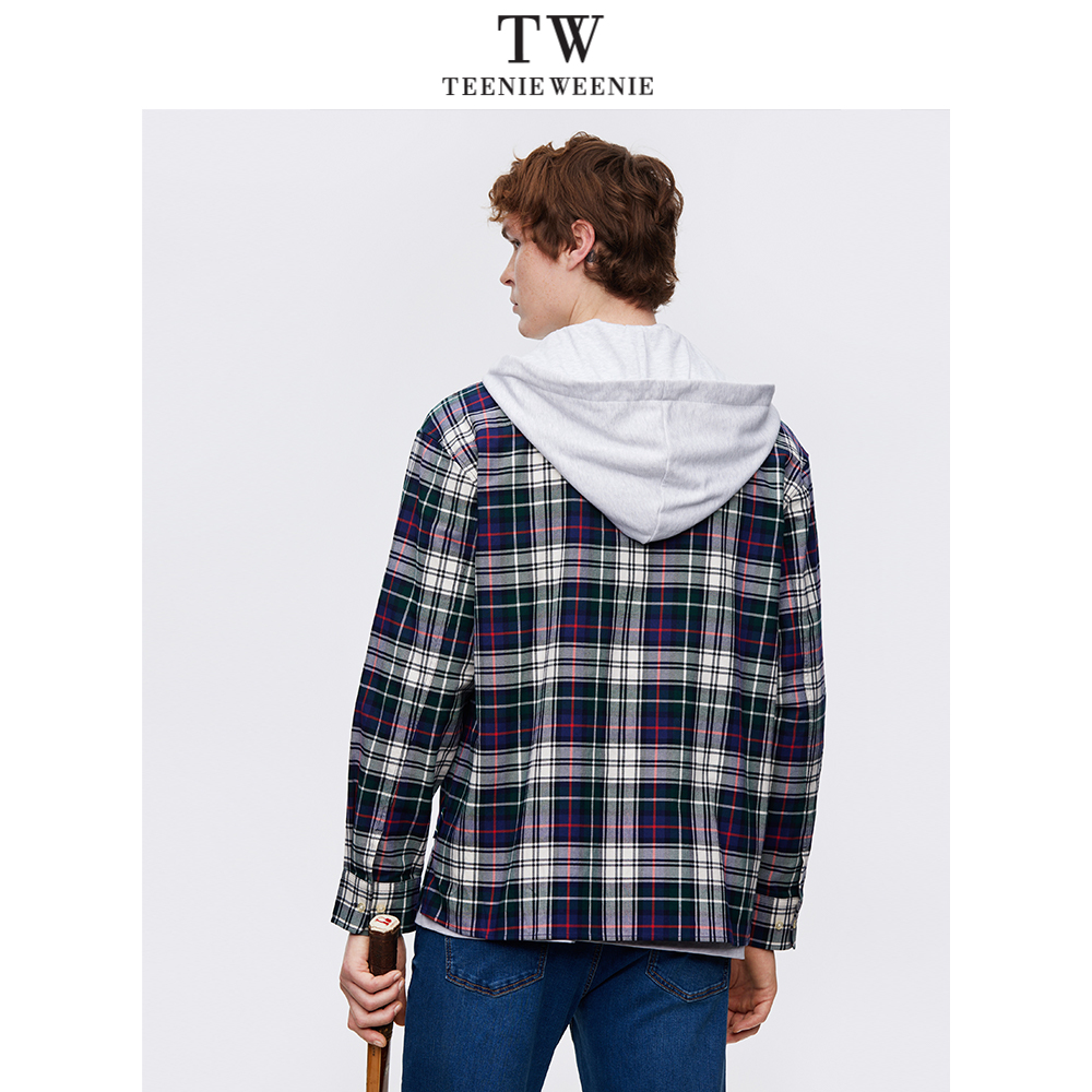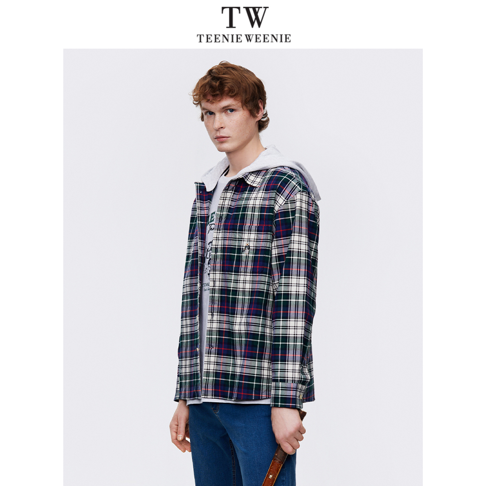 TeenieWeenie小熊男装格纹连帽衬衫2024夏季新款格子衬衣长袖男士