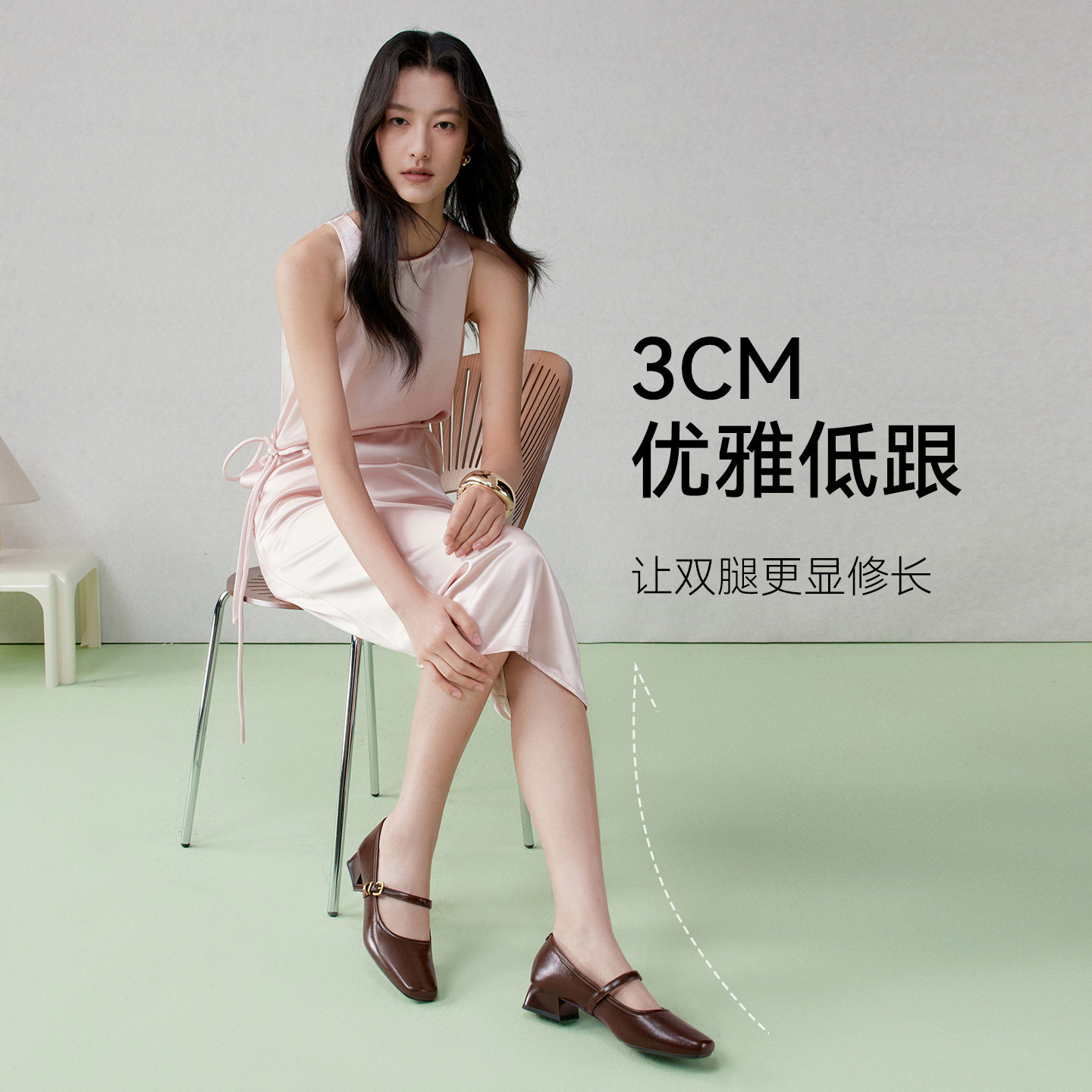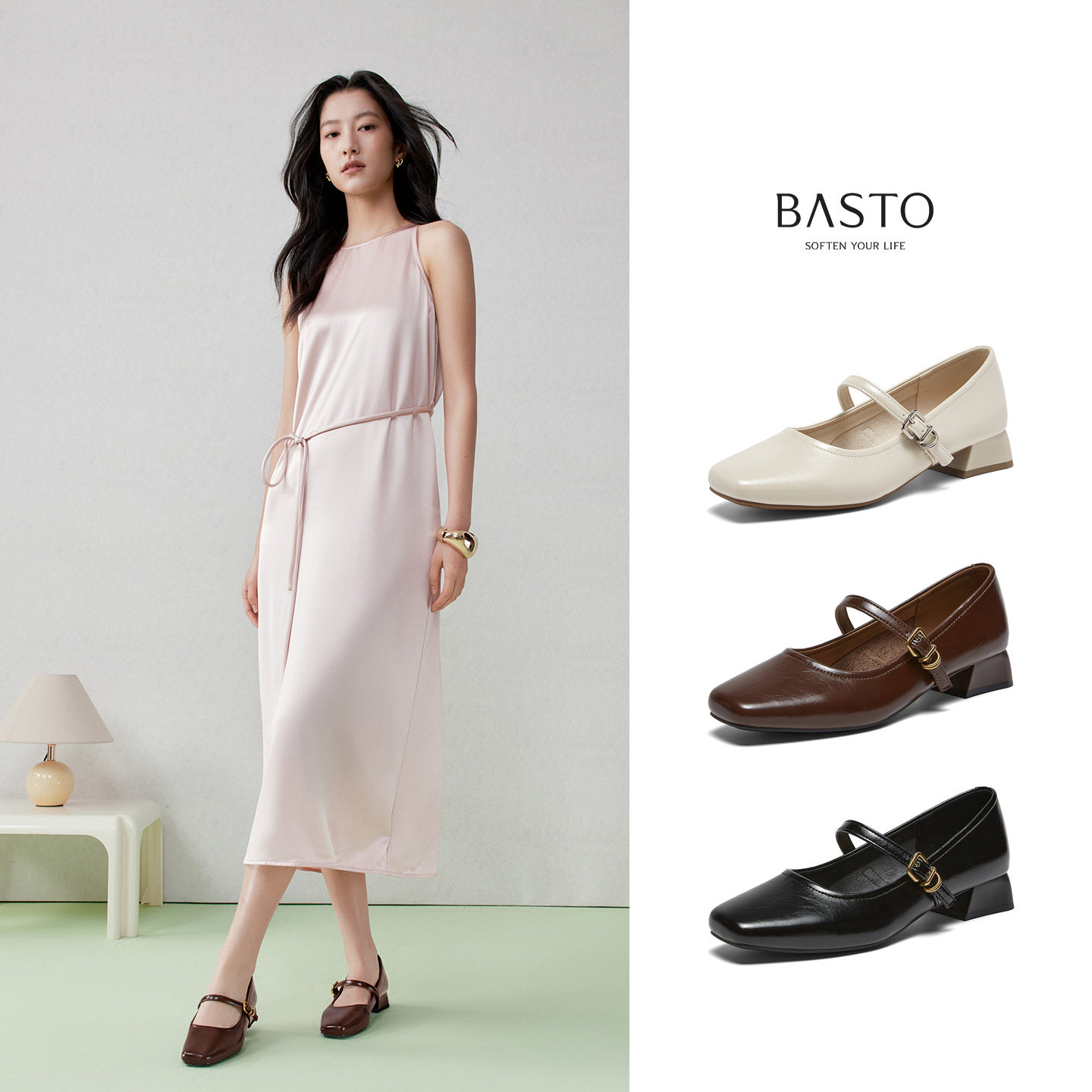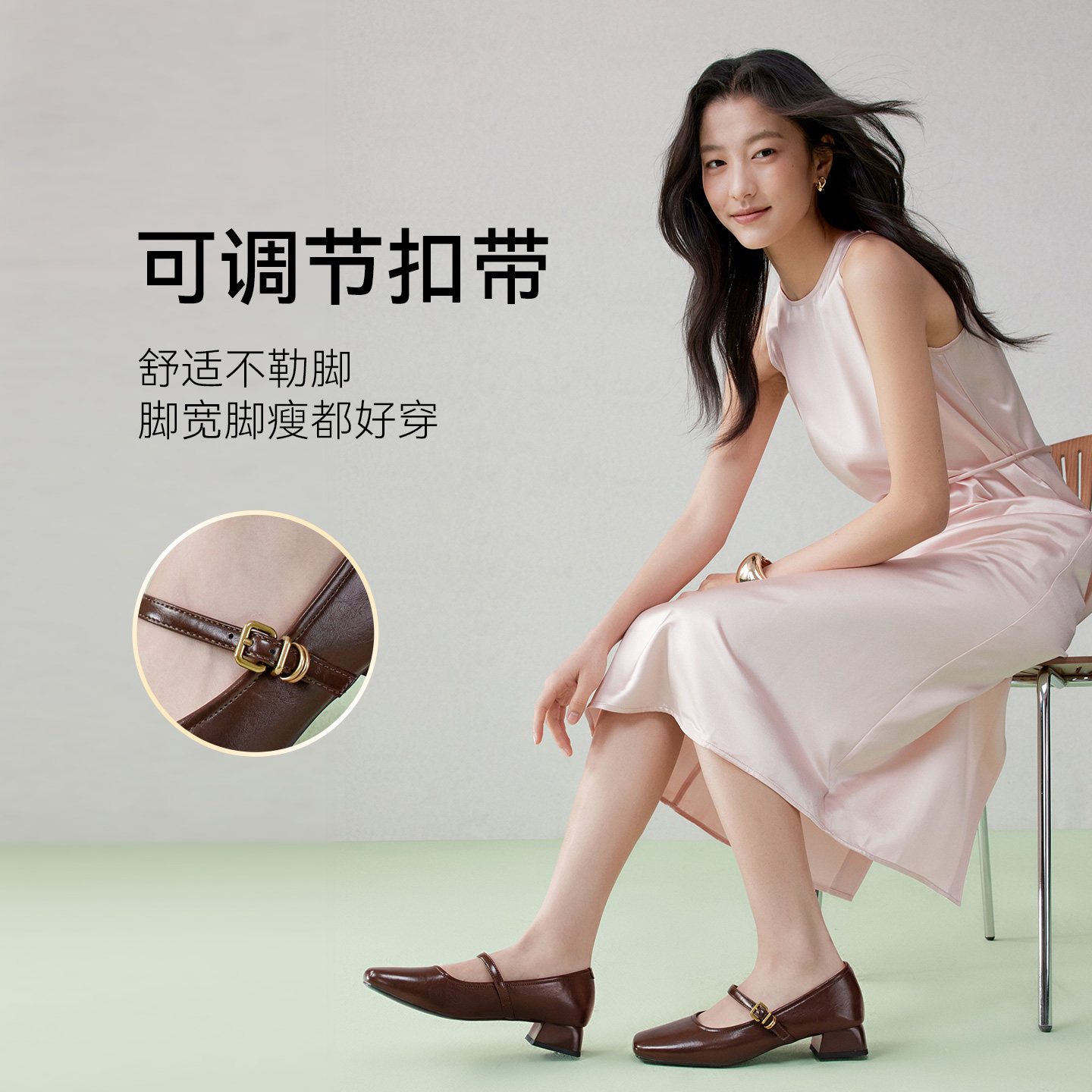 百思图春季新款法式玛丽珍鞋方头