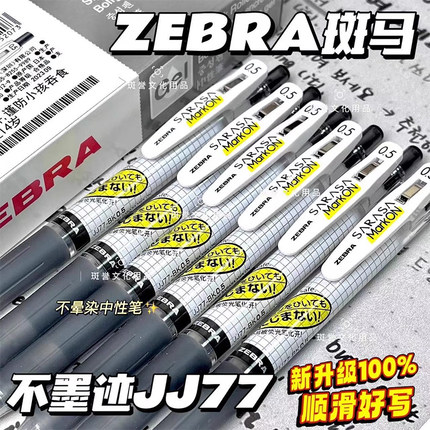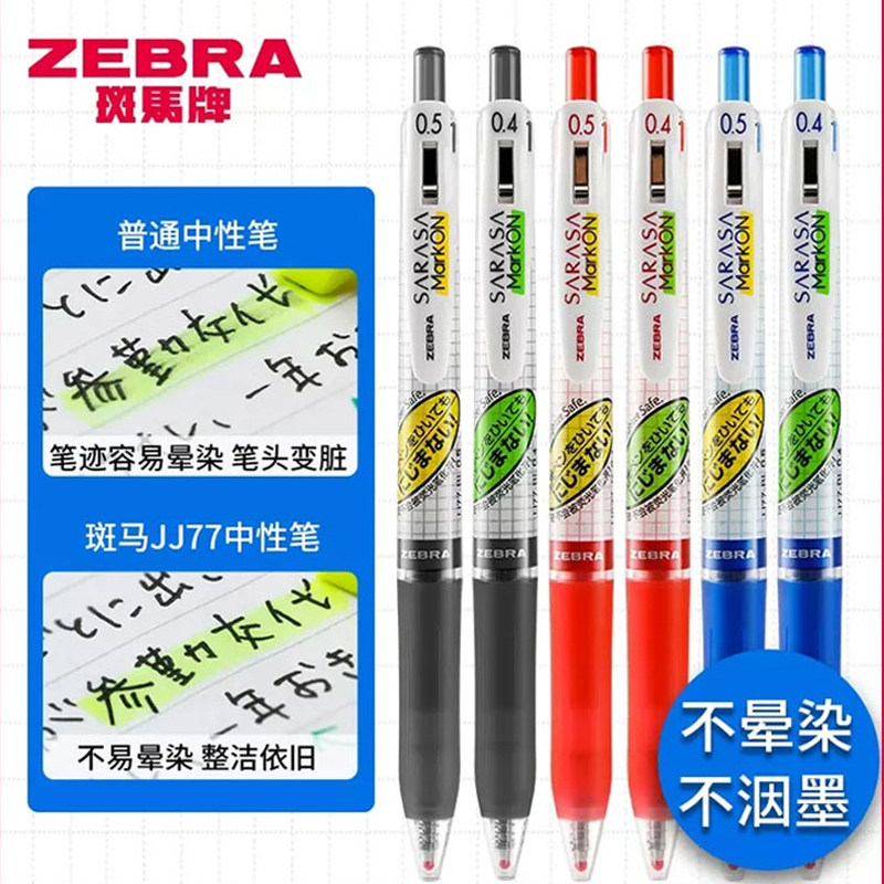 正品日本ZEBRA斑马JJ77中性笔荧光不晕染0.5按动水笔做笔记用黑笔