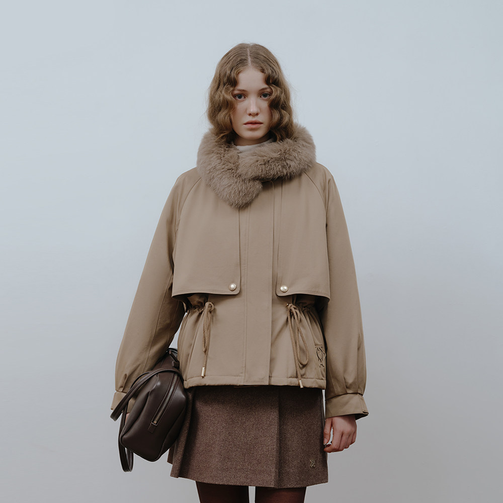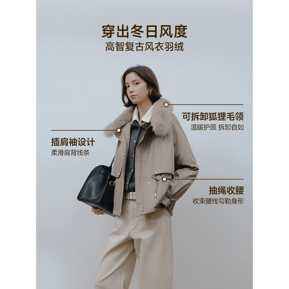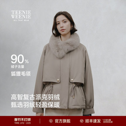TeenieWeenie小熊女派克羽绒服冬季舒适时尚狐狸毛领复古风衣外套