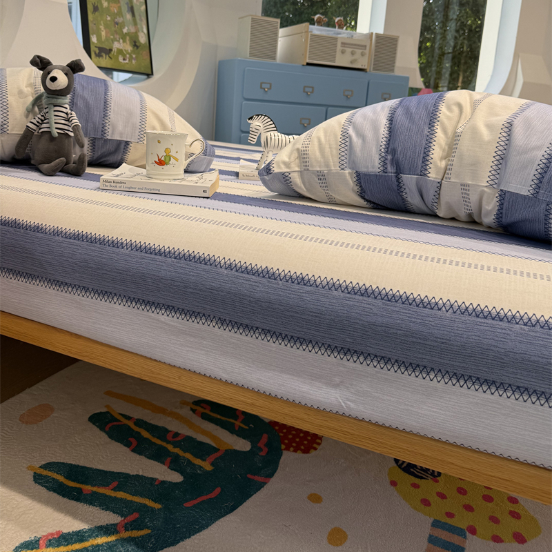 ins北欧纯棉秋冬加厚保暖蓝白条纹磨毛床笠床单单件1.5m1.8米床垫