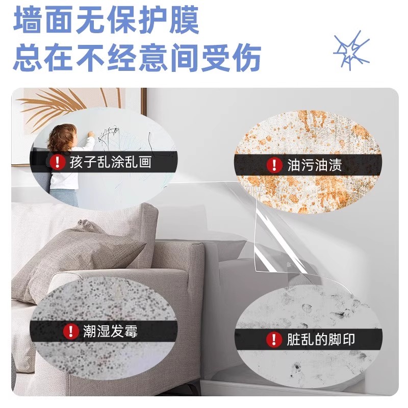 静电墙面保护膜白墙乳胶漆吸附墙壁贴纸不伤墙防水防脏透明护墙贴