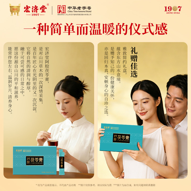 宏济堂阿胶茯苓膏湿气伏湿女补去春夏滋养送礼长辈父母礼盒300g