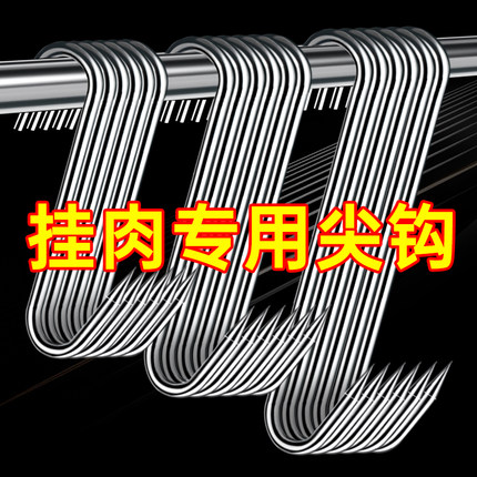 腊肉挂钩不锈钢S型晒腊鱼挂烤鸭香肠猪肉尖头勾子加粗S钩挂肉钩子