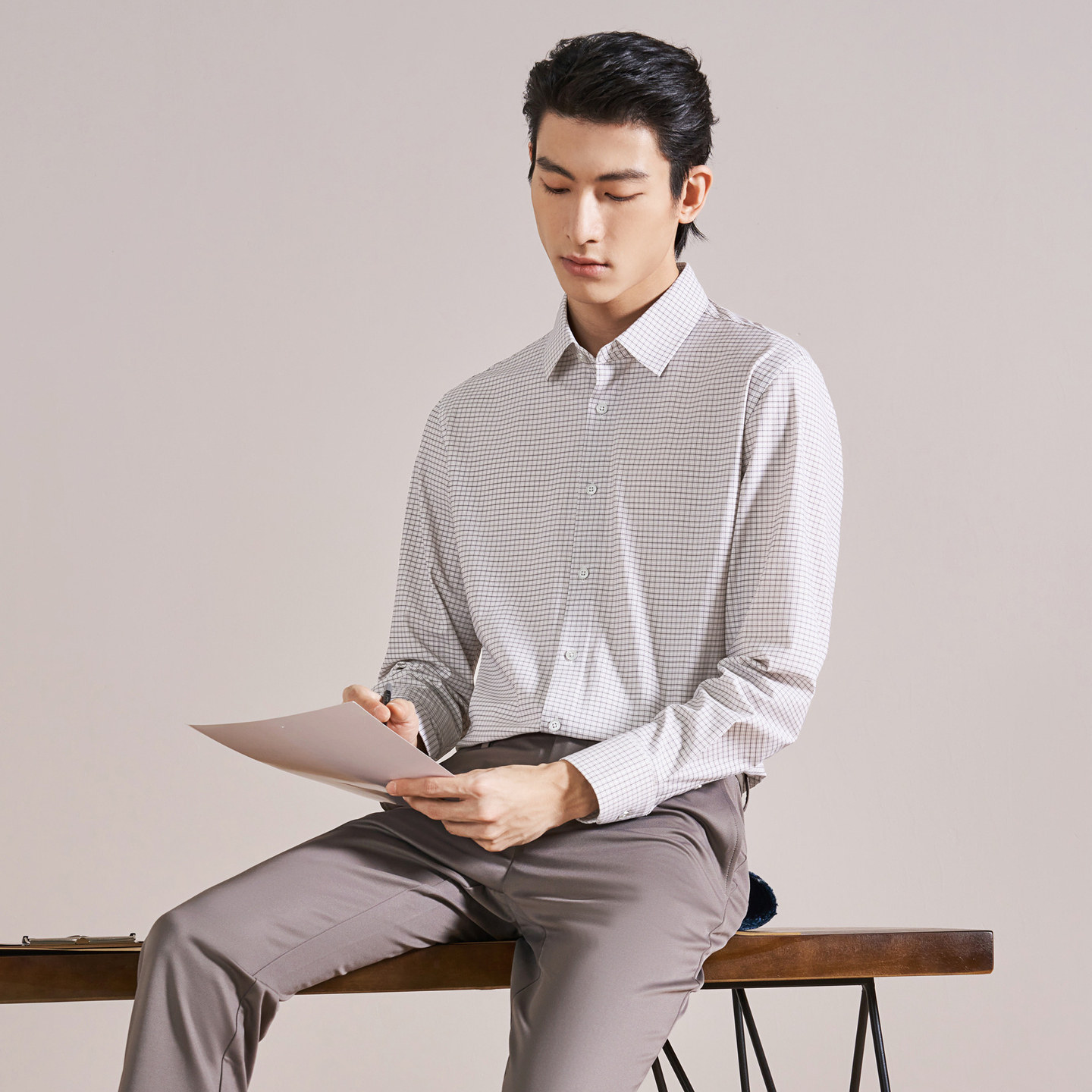 柒牌2026春季新款男士长袖格子衬衫商务通勤休闲上衣春季新款