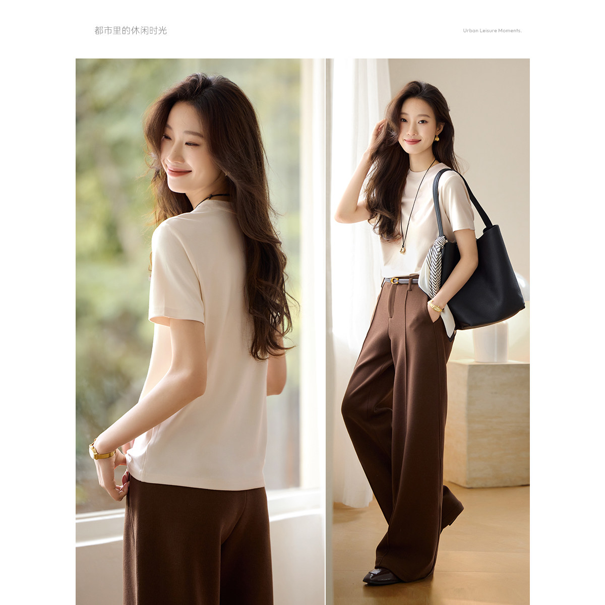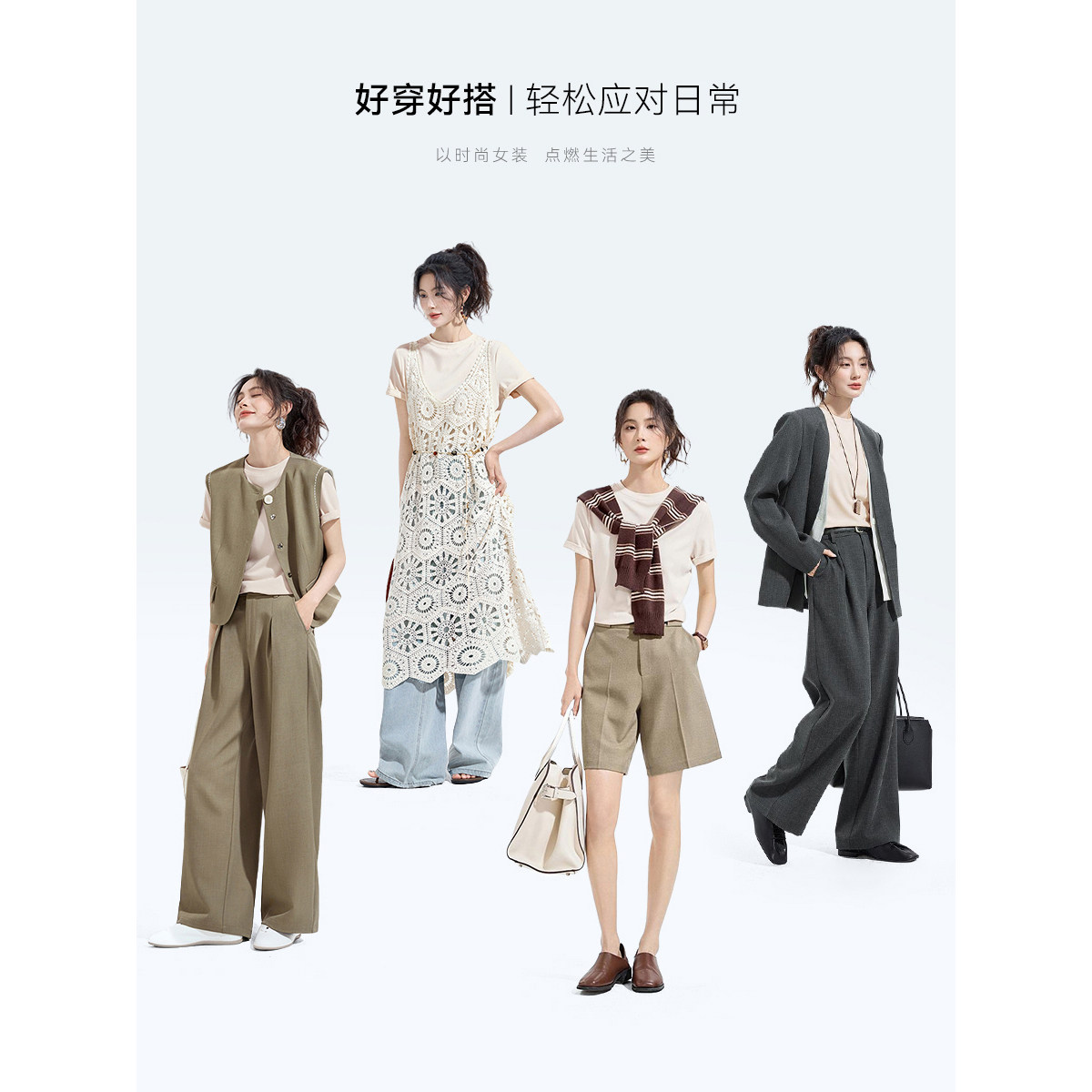 沫晗依美休闲百搭中袖女T恤2025春季新款基础纯色打底衫简约上衣